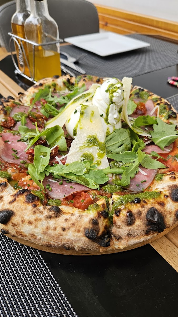 This café shines with its selection of pizzas, making it a must-visit for lovers of cheesy goodness. Among the standout dishes is the Pizza Bresaola, featuring velvety stracciatella burrata, rich bresaola, and an herbaceous crème basilic that harmonizes perfectly with the sweetness of sun-dried tomatoes. The Pizza Saumon, draped in a luscious white sauce and topped with smoked salmon and peppery arugula, excites the palate with every bite. For seafood aficionados, the Pizza Fruits De Mer is a seafood lover’s dream, loaded with gambas, calamari, and mussels, all resting on a flavorful tomato base.